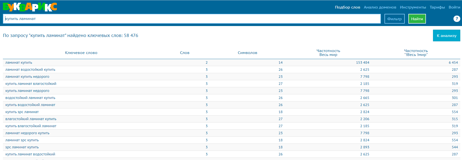 Букварикс - это инструмент, который помогает составить семантическое ядро на основе анализа текста. Он анализирует текст и предлагает ключевые слова и фразы, которые могут быть связаны с данной тематикой. Букварикс также предоставляет информацию о частоте запросов и конкуренции для каждого ключевого слова.