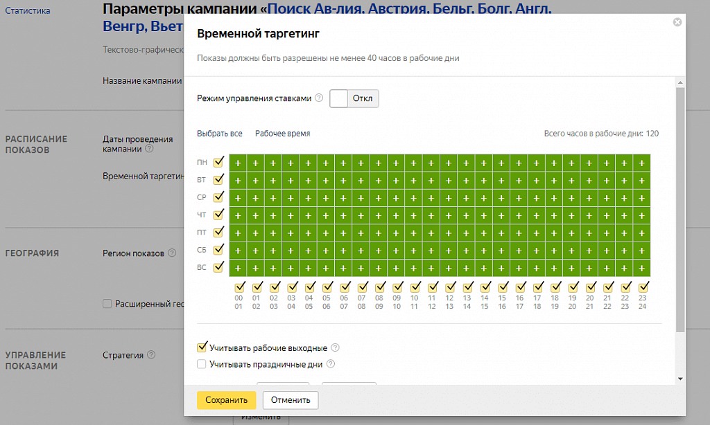 Кроме того, временной таргетинг может помочь вам оптимизировать расходы на рекламу. Например, если вы замечаете, что в какие-то дни недели или часы ваша реклама практически не приносит конверсий, вы можете исключить эти периоды из показа объявлений и сэкономить бюджет.