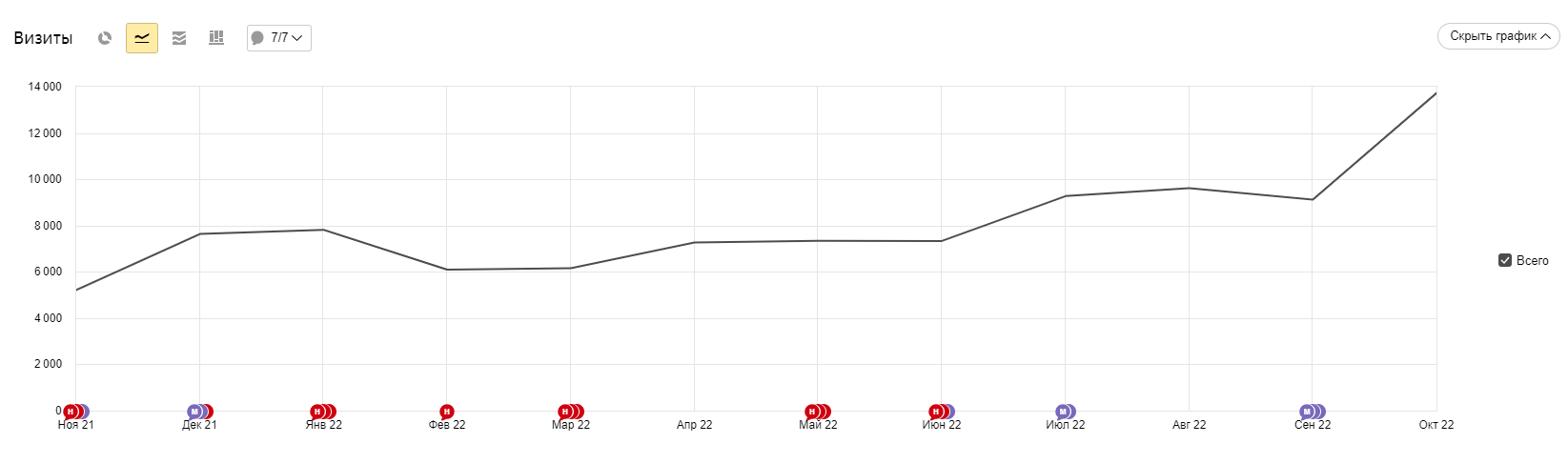 Благодаря расширению структуры сайта, улучшению навигации и лучшему покрытию важных ключевых слов, сайт стал более привлекательным для пользователей и поисковых систем, что положительно сказалось на его росте и увеличении посещаемости.