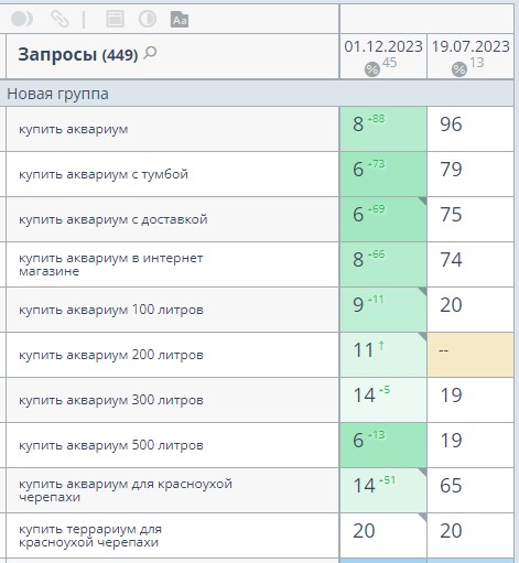 Рост позиций в поисковой системе Яндекса. 45% запросов попали в ТОП-10 уже через 4 месяца.