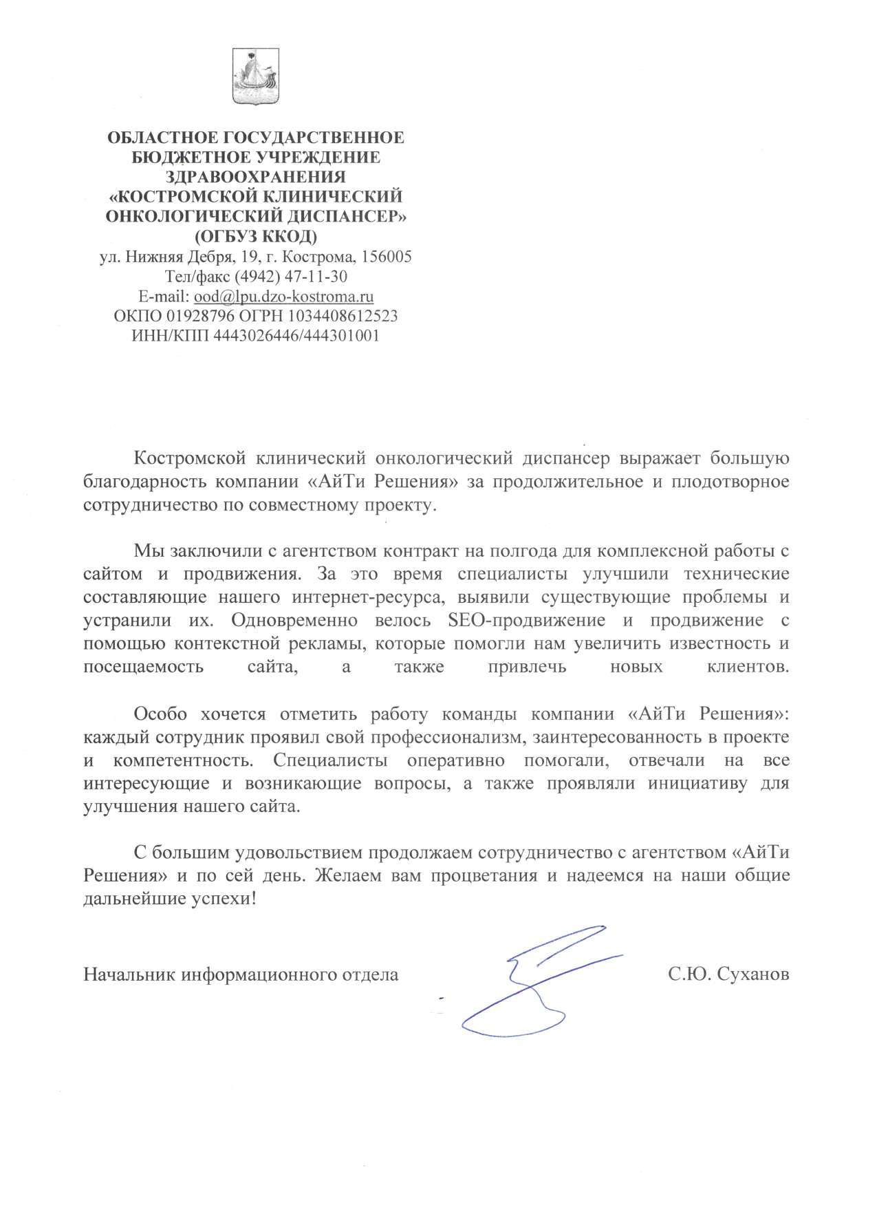 Основное медицинское учреждение в Костромской области, оказывающее специализированную помощь для онкологических больных со всей России.