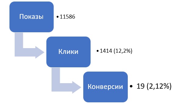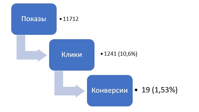 Были достигнуты хорошие показатели конверсионности с кампании на поиске, в следствие постоянной работы по оптимизации кампаний и ключей.