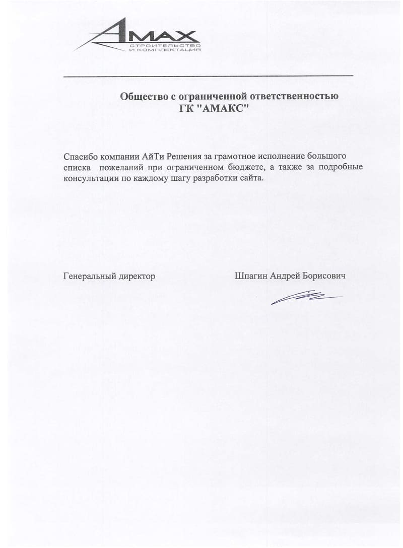 Спасибо агентству АйТи Решения за грамотное исполнение большого списка пожеланий при ограниченном бюджете, а также за подробные консультации по каждому шагу разработки сайта.